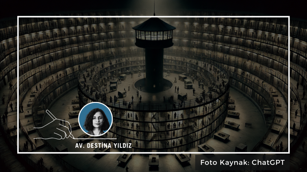 Hapishanelerin iç mimarisi ise Jeremy Bentham’ın panoptikon tasarımının amacına uygun olarak tasarlanmıştır. Kapatılanların her an izlendiklerini hissetmeleri ve bu şekilde hareketlerini kontrol etmeleri amaçlanmaktadır. Hapishanelerin her tarafında hücrelerin içerisini de görebilecek şekilde kameraların yer alması, hücre kapılarının sadece dışarıdan açılması, hücre kapılarında bulunan mazgalların da yine sadece dışarıdan açılabiliyor olması gibi uygulamalar denetim ve kontrol mekanizmasına örnek verilebilecek uygulamalardır.
